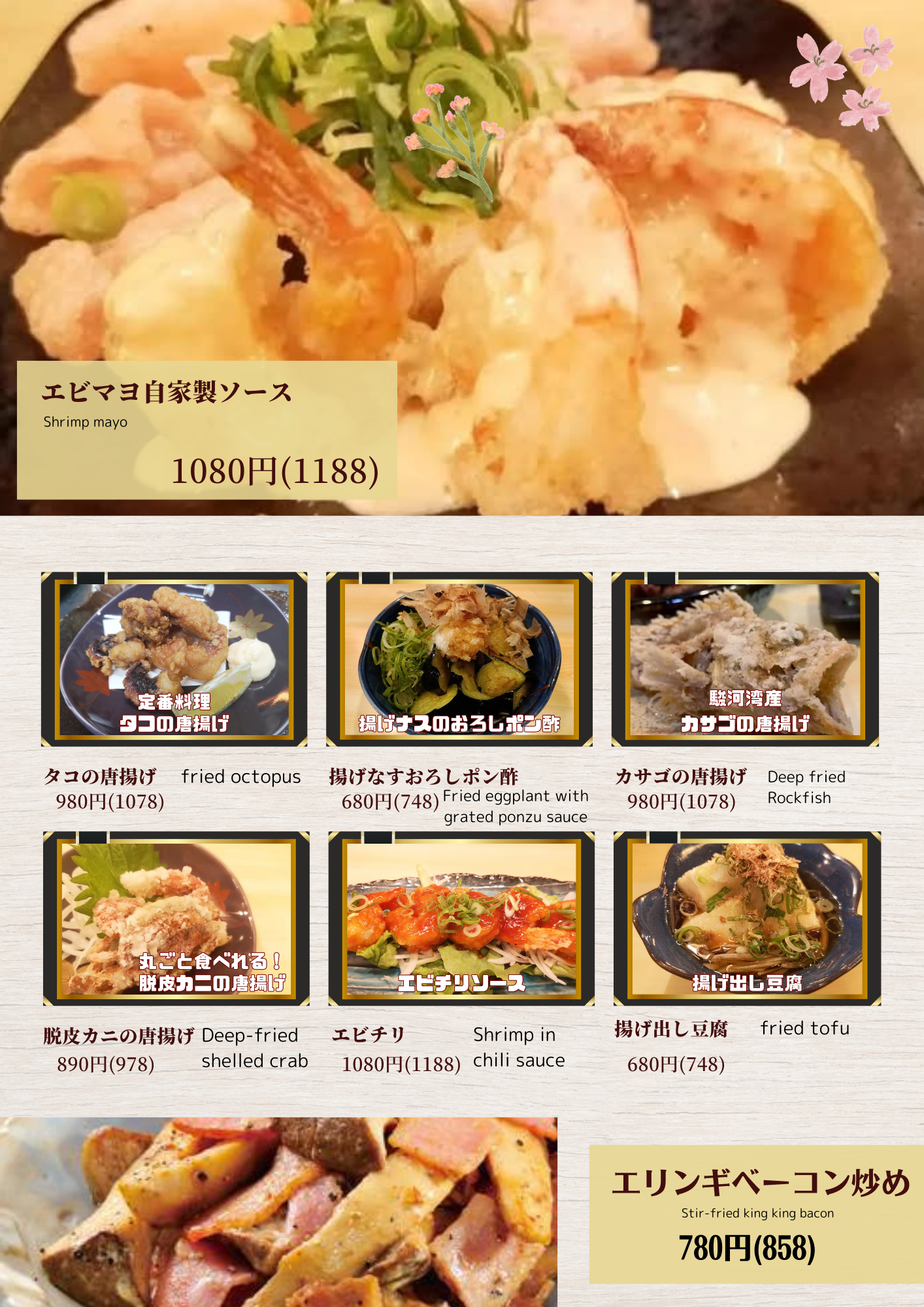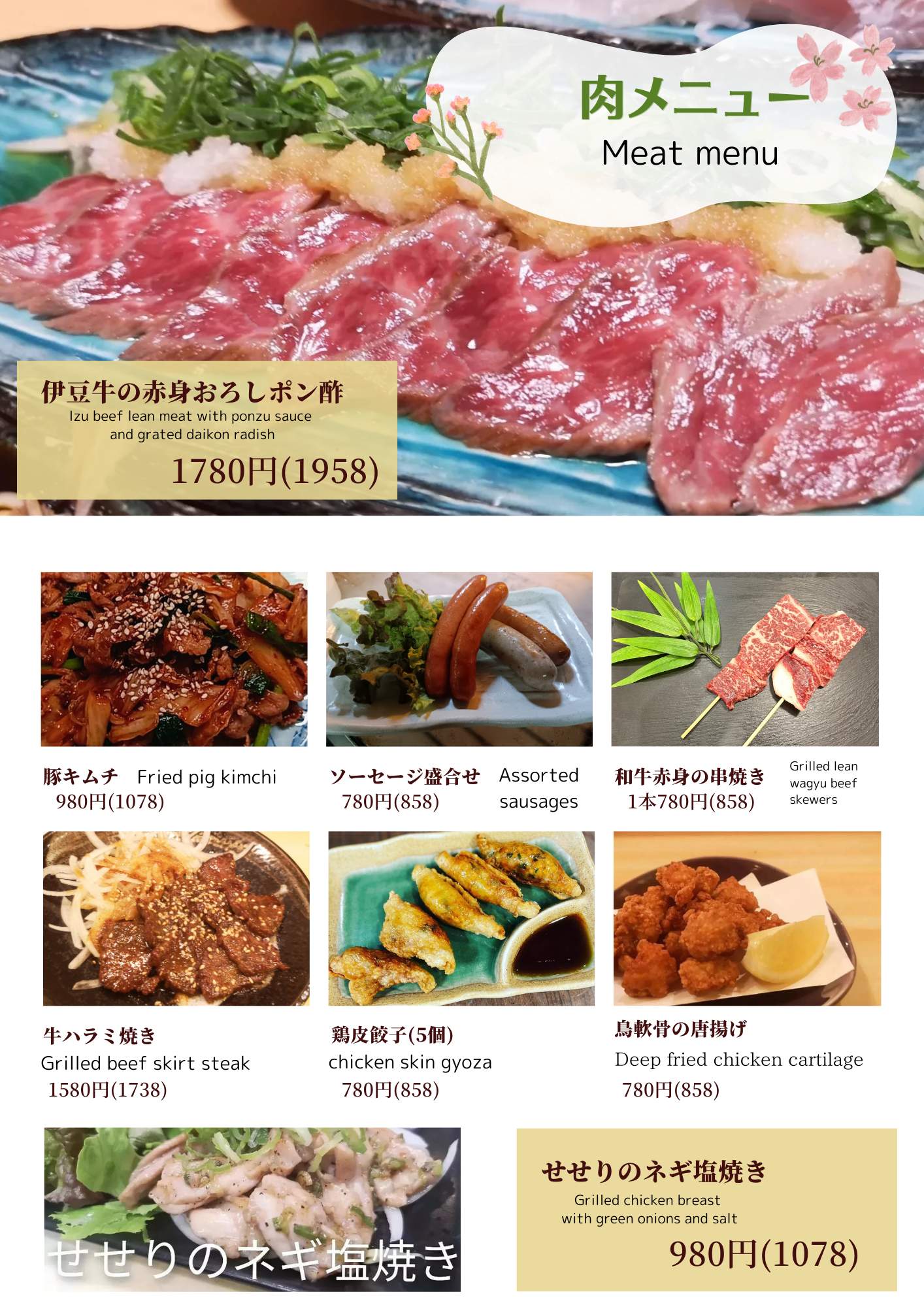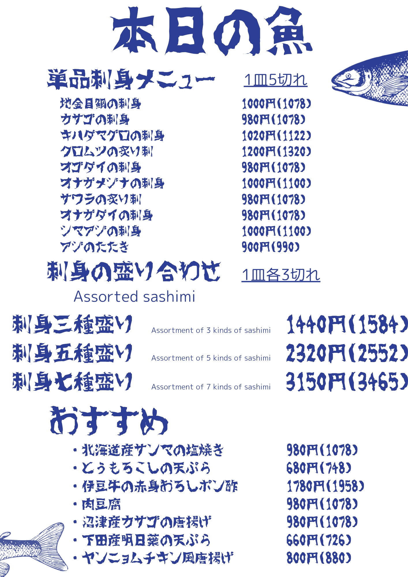 下田のマイマイ通りにある「なかなか」では、新鮮な地金目鯛をはじめ、地物の鮮度抜群のお刺身はもちろん、明日葉の天ぷらや肉料理、お酒が進むおつまみも充実。お席はゆったりとした50席をご用意しており、2階には最大24名様まで収容可能な大座敷と、10名様用の個室もございます。駅近の好立地で集まりやすく、忘年会や新年会などの各種ご宴会もお気軽にお問い合わせください。